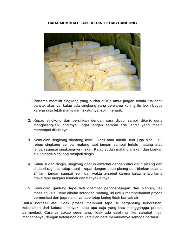 Keripik singkong jika dibuat dan dikemas dengan cara yang tepat dapat bertahan lama. Tape singkong adalah makanan yang umum dikonsumsi di indonesia. Susu bubuk sebanyak 20 gram. Singkong yang telah kering kemudian disortir kembali untuk diperoleh umbi singkong terbaik. Semua pada penasaran cara membuat tape singkong bondowoso yang empuk dengan rasa manis merata.